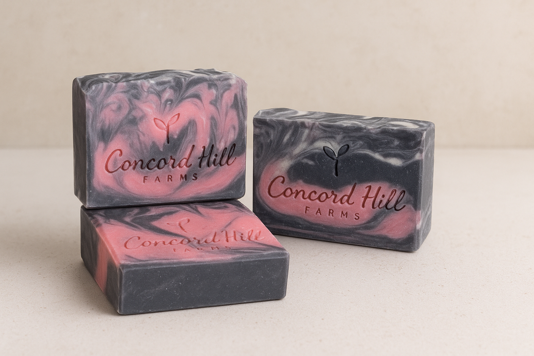 Concord Hill Farms handcrafted soaps are individually created and cut to 4.0 oz bars.  Every bar is as unique as the person using it, so you many note slight variations in color and texture.  All bars are cured for a minimum of 8 weeks before offered for sale.  This helps insure that bars are completely saponified and hardened.